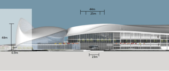 烟台八角湾国际会展中心的建筑设计方案呈现出碧海与蓝天相接的景象,海浪与白云交融,犹如一幅美丽的城市画卷徐徐展开,展现了八角湾黄金滨海岸线的地域特色。配套的会议中心选取贝壳与珍珠晶莹剔透的形象,轻盈的结构形成曲率优美的建筑轮廓,结构与外观完美融合。