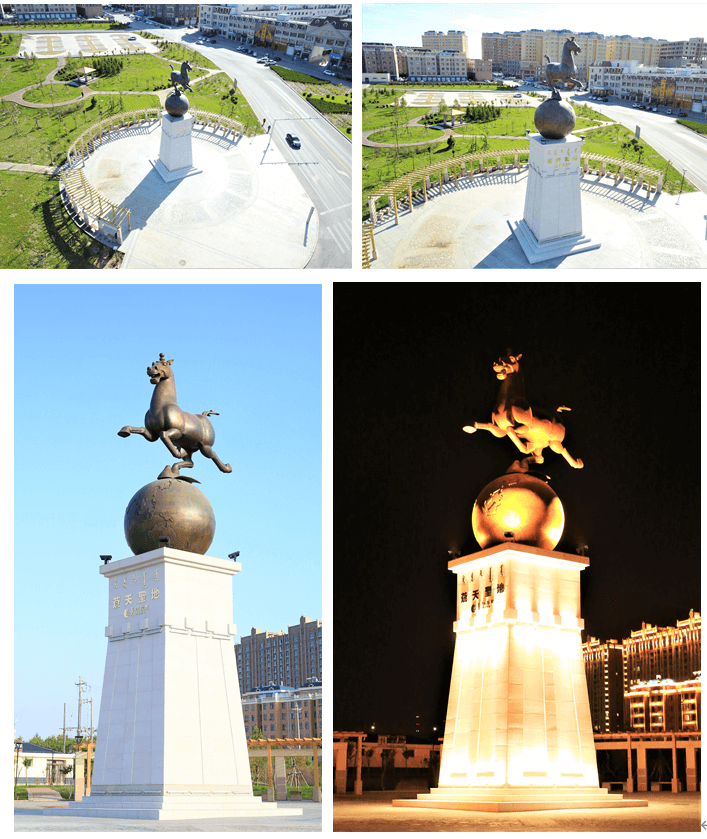 巴彦浩特公共空间文化艺术整体策划及重要节点区域公共艺术设计涵盖城市品牌形象设计、色彩建议、城市家具系统、城市空间节点雕塑,相关艺术活动等。目前完成的第一轮的规划设计与建设中,首先通过对整个城市的文化脉络的梳理找到这个城市的文化精神的内核从中找到了这个城市应该有的一个城市形象标识和VI体系,抓住这个城市应该有的城市色彩应用到建设和规划中去;同时在城市的重要出入口及重要广场和人流密集的空间结合城市品牌与色彩进行公共艺术及公共家具设计,以达到城市品牌和城市名片的推广和城市公共场所的美化和文化提升工作的目的。