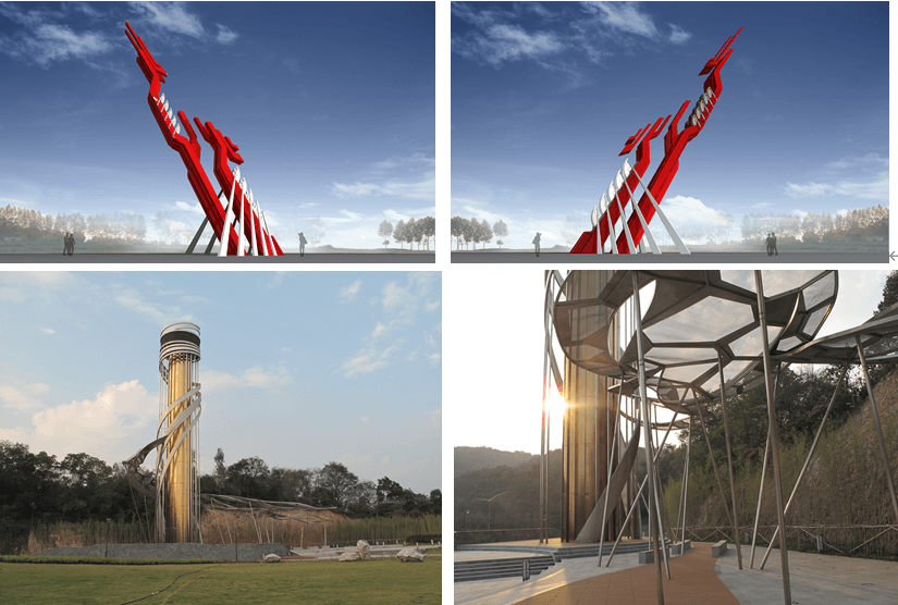 以“水”为元素和造型基础,呼应龙舟文化主题,将公园大门打造成为一件地标性公共艺术作品,极具象征意义的 开启一场龙舟文化体育之旅。