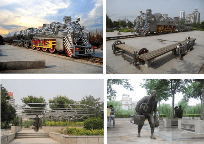 在线性空间中,以场地的遗存铁道为基础,挖掘郑州铁路兴城的文化,充分考虑作品的互动参与可能,划分区域和主题分别设置雕塑、装置作品。