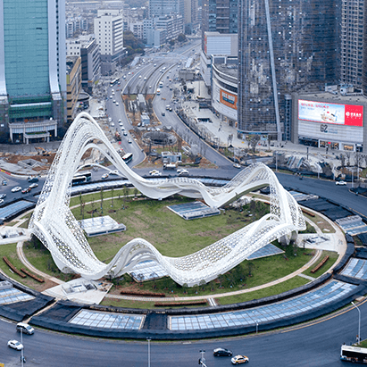 作品通过对武汉山水城市意向的艺术凝练与抽象表达,并结合“光谷”这个浪漫诗意的名字,力求将星空下的银河浮现在我们眼前。使之符合总体规划中提出的“创新引领的全球城市,江风湖韵的美丽武汉”的大目标。