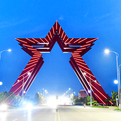 雕塑高52米,横跨苏维埃大道(65米),侧面宽度24米,由3组钢构五角星组成,内部采用钢结构,表面采用不锈钢板喷汽车漆,设计灵感取自于中华苏维埃共和国国徽,高大的五角星雕塑寓意着瑞金这块红土地永放光芒。